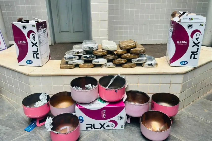 Com quase todos os elementos do flagrante constatados, os militares conduziram o suspeito e o material para a delegacia, onde houve a confirmação da presença de drogas no interior dos cilindros. Foram encontrados cerca de 20 tabletes grandes de substância semelhante à maconha, totalizando 21,920 kg. Todo o material ilícito, e o homem preso, foram apresentados à autoridade policial civil.