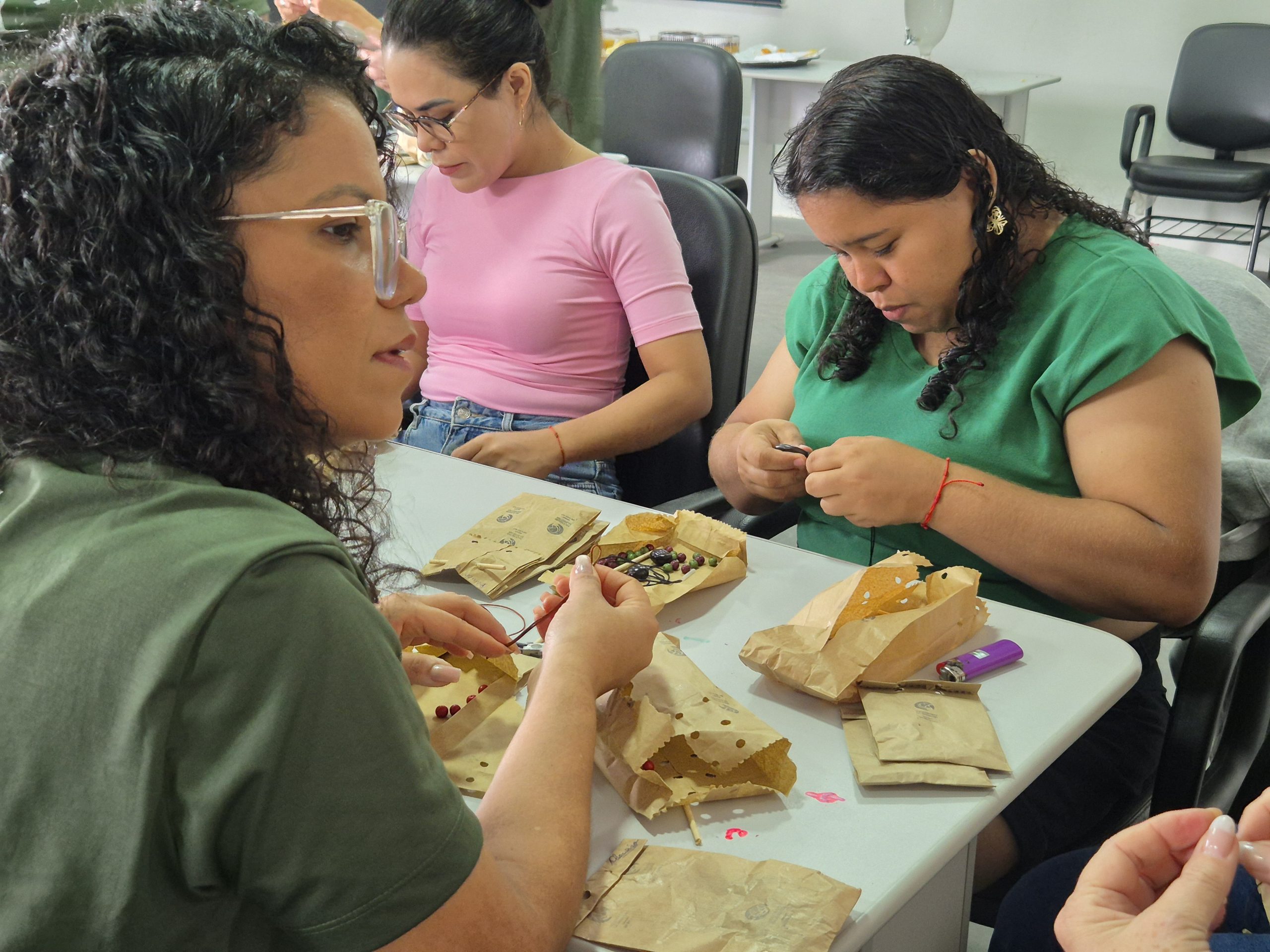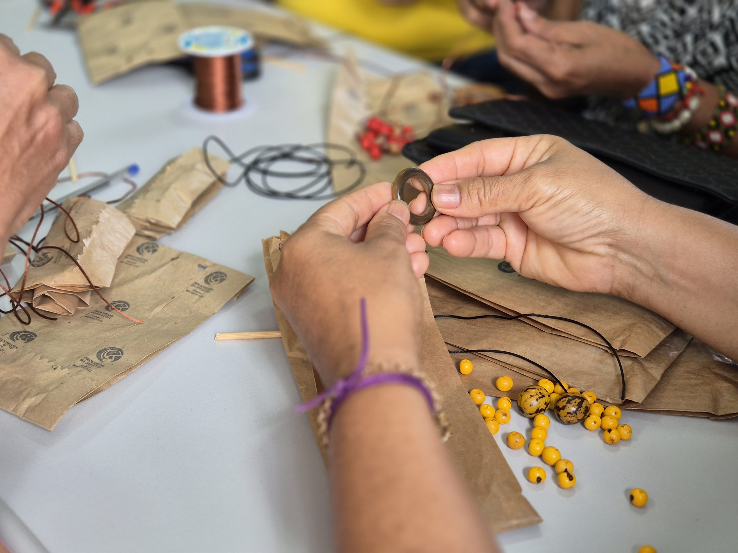 Mais do que ensinar um ofício, a proposta incentiva o cuidado com o meio ambiente e mostra como materiais considerados sem valor podem se tornar fonte de renda. “Estamos aqui para passar um pouco da nossa técnica. A partir disso, elas podem criar outras peças e desenvolver suas próprias biojoias. Também mostramos a importância de trabalhar com responsabilidade com o meio ambiente, cuidando das árvores e dos nossos recursos naturais para garantir um futuro com dignidade para nossos filhos e netos”, destacou Luciene.